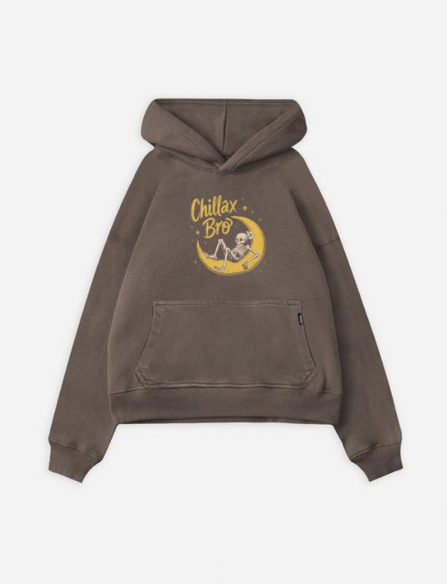Chillax Bro Skeleton on Moon Cartoon Design Hoodie
